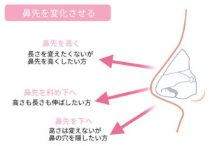 鼻柱を下げたい方、鼻先の角度を改善したい方は、